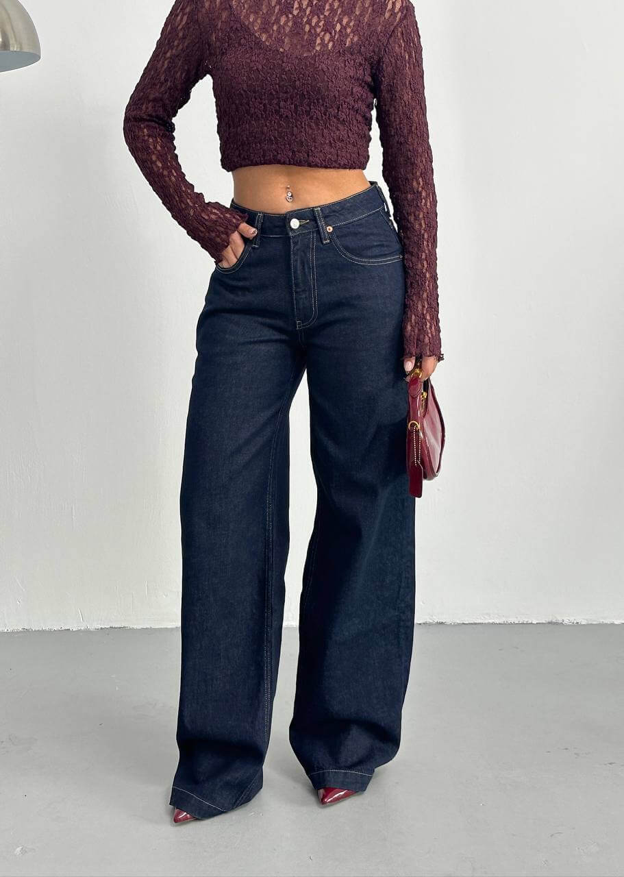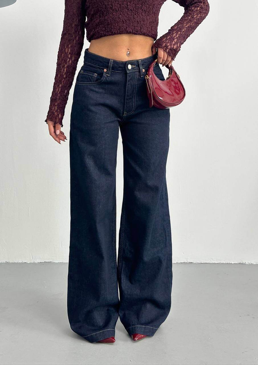 جينز وايد لگ نيلي - wid leg dark blue jeans